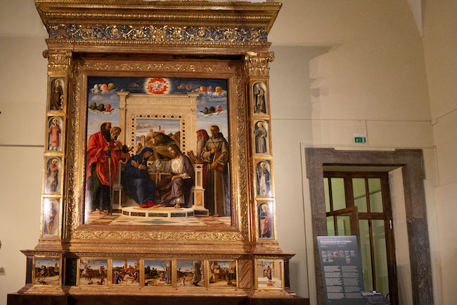 Così Daniele Vimini, vicesindaco e assessore alla Bellezza del Comune: ‘sono felice di presentare questo intervento che ha visto i tempi di esecuzione perfettamente rispettati, un restauro complesso che i visitatori della sala hanno potuto seguire in diretta. Un ringraziamento a tutti quelli che hanno contribuito a questo risultato, la Soprintendenza e tutti i restauratori coinvolti che hanno lavorato con competenza e passione. La Pala è il capolavoro dei Musei Civici, il motivo di tante presenze durante l’anno ed è una felice coincidenza – rispetto ai valori e al soggetto che raffigura – che la conclusione del restauro arrivi ora con la partenza delle feste religiose più significative del calendario. Si tratta di un progetto importante che risolve criticità con una lunga storia e che ha visto impegnati contributi ministeriali e dell’amministrazione comunale. Da questo intervento necessario si apre ora una fase su cui confrontarsi con la Soprintendenza, di ulteriore riqualificazione della sala con l’obiettivo finale di lasciare sempre più spazio visivo alla Pala e dunque con l’esigenza di lavori specifici per traslare altre opere.’