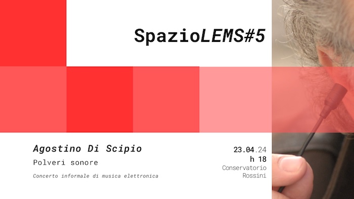 PESARO – Martedì 23 aprile 2024 (ore 18) riprendono gli appuntamenti con la rassegna “Spazio LEMS#… Concerti informali di musica elettronica” organizzata dalla Scuola di Musica elettronica del Conservatorio Rossini. Nella Sala dei Marmi di Palazzo Olivieri, il Conservatorio Rossini ospiterà il compositore elettroacustico Agostino Di Scipio, a conclusione della masterclass “Pratiche musicali ecosistemiche” che l’artista terrà per gli studenti dell’Istituto lunedì 22 e martedì 23 aprile.