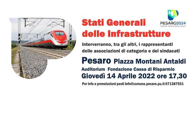 PESARO – Giovedì 14 aprile 2022, dalle 17.30, nell’Auditorium della Fondazione Cassa di Risparmio di Pesaro a Palazzo Montani Antaldi, si terranno gli “Stati generali delle infrastrutture”.I temi al centro dell’incontro saranno rigenerazione urbana, mobilità sostenibile, Pnrr, modernizzazione della rete dei trasporti con un focus particolare sull’arretramento della ferrovia.