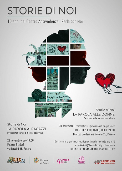 “Storie di noi” si divide in due momenti. Il primo è dedicato a “Storie di noi: La parola ai ragazzi”, evento inaugurale e mostra collettiva venerdì 29 novembre alle ore 17, nel cortile e nella salone nobile di Palazzo Gradari in via Rossini 26, Pesaro. Nell’ultimo anno il Centro Antiviolenza e Percorso Donna hanno organizzato percorsi di formazione nelle scuole superiori del territorio provinciale. Insieme agli studenti, sono stati analizzati modelli e dinamiche relazionali, stereotipi e linguaggi di genere, tradotte in immagini e parole e realizzate locandine. Queste ultime comporranno la mostra collettiva interattiva che sarà inaugurata dopo uno spettacolo di danza e musica curato dalle studentesse e dagli studenti. Il secondo momento è “Storie di noi: La parola alle donne” . Parole ad arte per narrare storie; le tante storie raccolte in questi anni al Centro Antiviolenza diventeranno immagini, parole e musica. Sabato 30 novembre i racconti si ripeteranno, nell’arco della giornata, in cinque differenti orari: ore 9.30, 11.30, 16, 18, 21, nei sotterranei di Palazzo Gradari, via Rossini 26, Pesaro. E’ necessario prenotare, specificando l’orario, inviando una mail a storiedinoi@labirinto.coop o chiamando 0721/456415 (14 -17). Parole vere e capaci di trasmettere i vissuti delle donne, rispettando l’anonimato che si riserva a chi si rivolge al Centro Antiviolenza in nome della tutela e della fiducia.