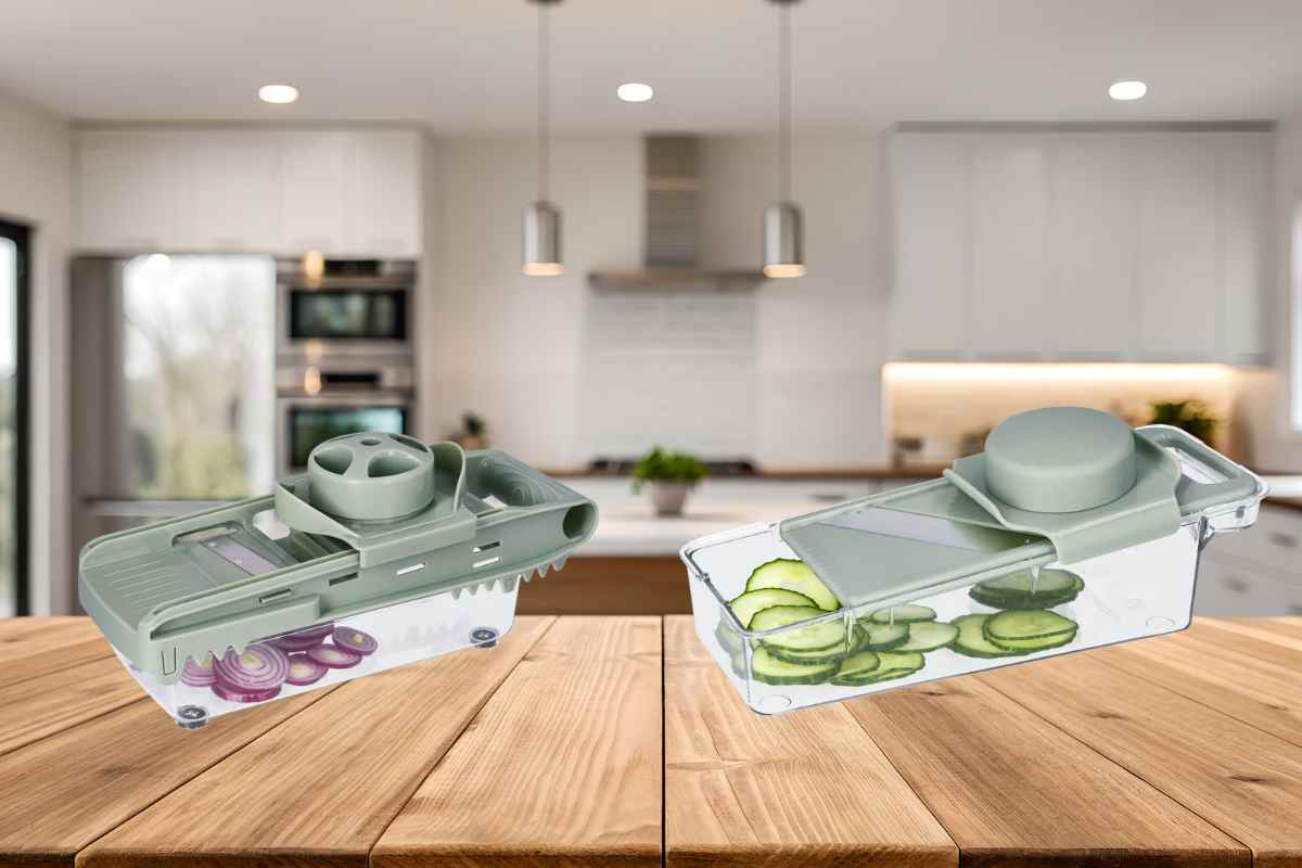 Questa configurazione permette di affettare verdure, grattugiare formaggi, preparare insalate e creare tagli decorativi in pochi secondi, senza fatica e con grande precisione. Il design è studiato per garantire stabilità durante l’uso, riducendo il rischio di scivolamenti e rendendo l’accessorio adatto anche ai meno esperti.