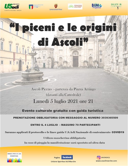 ASCOLI PICENO – “I piceni e le origini di Ascoli”: è questo il tema del tour culturale in programma per oggi, lunedì 5 luglio 2021, alle ore 21 con partenza da Piazza Arringo.