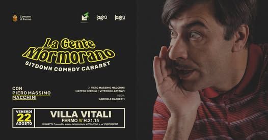 FERMO – Venerdì 22 agosto 2025, alle ore 21.15, presso l’Arena di Villa Vitali a Fermo andrà in scena “La Gente mormorano”, uno spettacolo di sit down comedy cabaret di Piero Massimo Macchini,Matteo Berdini e Vittorio Lattanzi.Con Piero Massimo Macchini per la Regia di Gabriele Claretti.