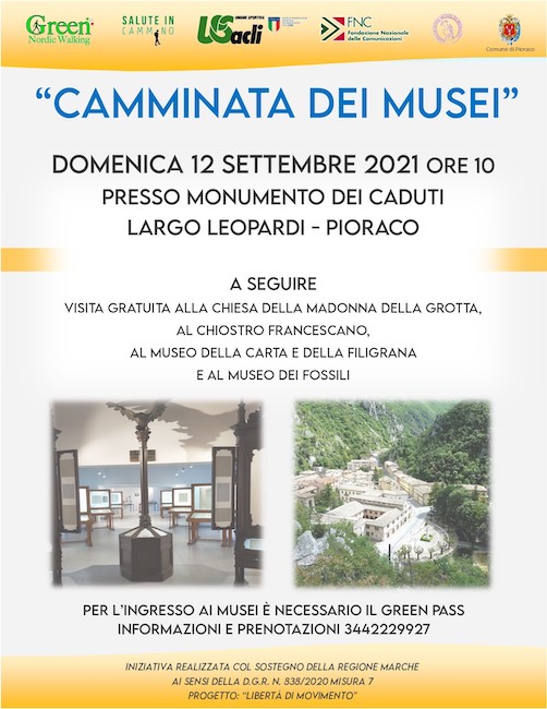 L’iniziativa rientra nel progetto “Libertà di movimento” realizzato, col sostegno della Regione Marche (Delibera 838/2020) e della Fondazione nazionale delle Comunicazioni dall’amministrazione comunale di Pioraco e dall’U.S. Acli Marche con la collaborazione di ASD Green Nordic Walking, Associazione musei di Pioraco e U.S. Acli provinciale di Macerata ed Ascoli Piceno.