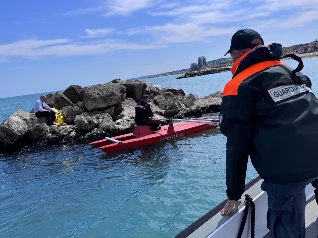 PORTO POTENZA PICENA – Nel pomeriggio di ieri, sul lungomare Marinai d’Italia della cittadina rivierasca di Porto Potenza Picena, alcuni passanti hanno notato un giovane entrare in acqua e dirigersi rapidamente verso la scogliera posta di fronte la battigia, comprendendo immediatamente le intenzioni suicidarie del ragazzo. A questo punto sono stati allertati i Carabinieri della locale Stazione che, prontamente, si sono recati sul luogo dell’evento, raggiunti dal personale dei Vigili del Fuoco e da una motovedetta della Capitaneria di Porto di Civitanova Marche. Il Comandante della Stazione Carabinieri, il Maresciallo Maggiore Alessio Alberigo e il Carabiniere Scelto Cirilli Emanuele, saliti a bordo del pattino di salvataggio dello stabilimento balneare Blu di Lollo, hanno raggiunto il giovane di 25 anni della provincia di Ancona. Questi, per niente collaborativo, ha continuato a nuotare sino agli scogli sui quali si è arrampicato.