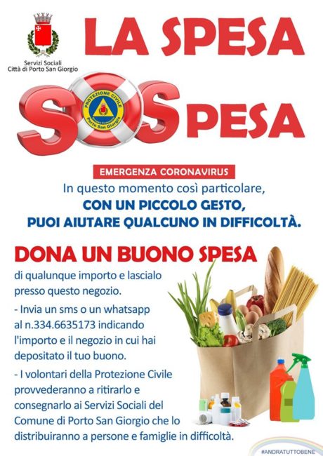 PORTO SAN GIORGIO – Martedì 19 maggio saranno consegnati a 111 famiglie di Porto San Giorgio i buoni raccolti con l’iniziativa cittadina “Spesa Sospesa”. Durante il periodo dell’emergenza i cittadini hanno potuto donare in 33 esercizi commerciali convenzionati degli importi in denaro che l’Assessorato ai Servizi sociali ha poi raccolto. In circa un mese la somma raccolta ha superato i 10.000 euro.