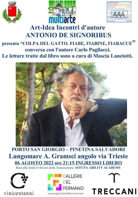 PORTO SAN GIORGIO – Antonio De Signoribus, con le sue fiabe, fiabine e fiabacce, approda a Porto San Giorgio. L’ultimo lavoro del poliedrico scrittore s’intitola appunto “Colpa del gatto. Fiabe, fiabine e fiabacce” ed è una raccolta di fiabe della tradizione popolare che arricchisce la già nutrita ricerca che De Signoribus sta portando avanti da anni sul tema.