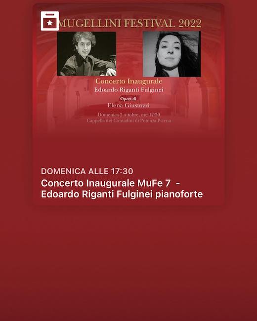 “Seguo lo sviluppo artistico di Edoardo Riganti Fulginei da alcuni anni – ha dichiarato il direttore artistico della parte musicale del Mugellini il M° Lorenzo Di Bella – Nonostante la sua giovane età, compirà 18 anni a fine ottobre, abbina ad una padronanza strumentale una profondità di pensiero e ricerca interpretativa che lo rendono una vera promessa del concertismo italiano. Il Mugellini Festival gli dimostra la sua stima affidandogli il concerto inaugurale, l’evento di punta della manifestazione da sempre affidato a grandi pianisti internazionali”.