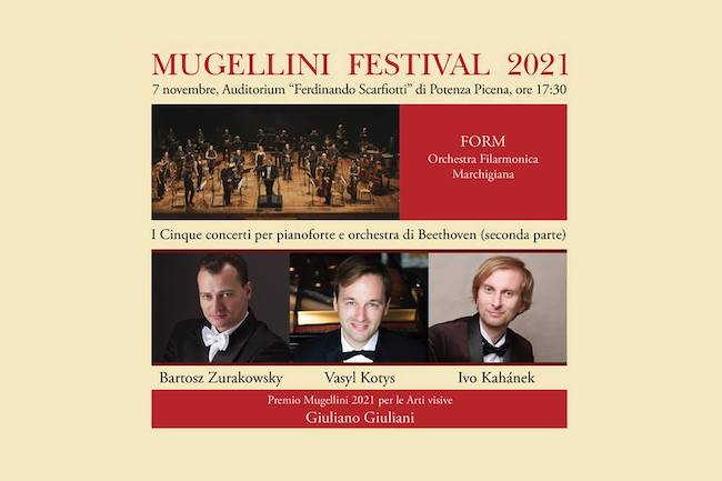 POTENZA PICENA (MC) – Dopo il grande successo dei primi tre concerti per pianoforte e orchestra di Beethoven che hanno visto i giovani pianisti Alessio Falciani e Giuseppe Ottaviani, con il Maestro Lorenzo Di Bella nella duplice veste di solista e direttore dell’Orchestra Filarmonica Marchigiana, il Mugellini Festival si conclude domenica prossima 7 novembre 2021 con gli ultimi due concerti all’Auditorium “Scarfiotti” di Potenza Picena.