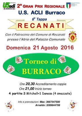 RECANATI – Appuntamento con il burraco targato U.S. Acli Marche domenica 21 agosto presso l’atrio del palazzo comunale. Alle...