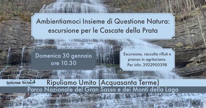 ACQUASANTA TERME (AP) – Domenica,30 gennaio 2022, a partire dalle ore 10.30, si terrà una escursione guidata alle Cascate della Prata nell’ambito di “Ambientiamoci insieme”, un’iniziativa dedicata alla cura e alla pulizia del territorio, organizzata dall’associazione di promozione sociale “Questione Natura”.