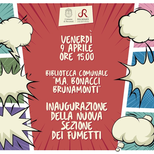 RECANATI – Il fumetto sarà l’atteso protagonista della nuova area a lui completamente dedicata nella Biblioteca comunale Bonacci Brunamonti di Recanati che verrà inaugurata domani venerdì 9 aprile alle ore 15.