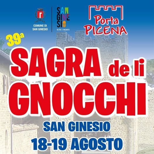 SAN GINESIO – San Ginesio, il balcone dei Monti Sibillini sulle Marche, si prepara a vivere uno degli appuntamenti più attesi dell’estate: la 39esima edizione della Sagra de li Gnocchi, in programma domani lunedì 18 e martedì 19 agosto 2025, presso i suggestivi Giardini del Pincio, nel Rione Porta Picena.