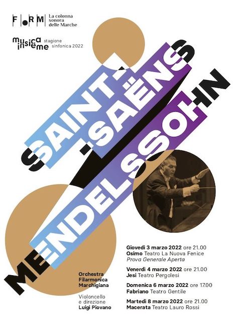 L’Orchestra Filarmonica Marchigiana, diretta in questa occasione proprio dal primo violoncello solista dell’Orchestra di Santa Cecilia, si esibisce da oggi, giovedì 3 marzo 2022, a Osimo, Jesi, Fabriano e Macerata con “SAINT-SAËNS E MENDELSSOHN”.