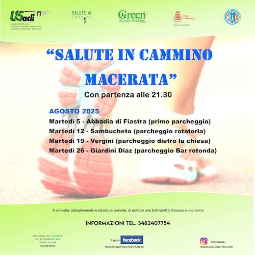 MACERATA – Proseguiranno anche nel mese di Agosto, con 4 appuntamenti, le attività del progetto “Salute in cammino”.
