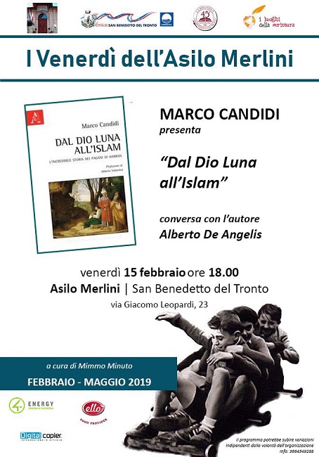SAN BENEDETTO DEL TRONTO – Marco Candidi per il ciclo “I Venerdi dell’Asilo Merlini” presenterà il libro “Dal Dio Luna all’Islam” venerdì 15 Febbraio ,alle ore 18.00, presso l’ Asilo Merlini.