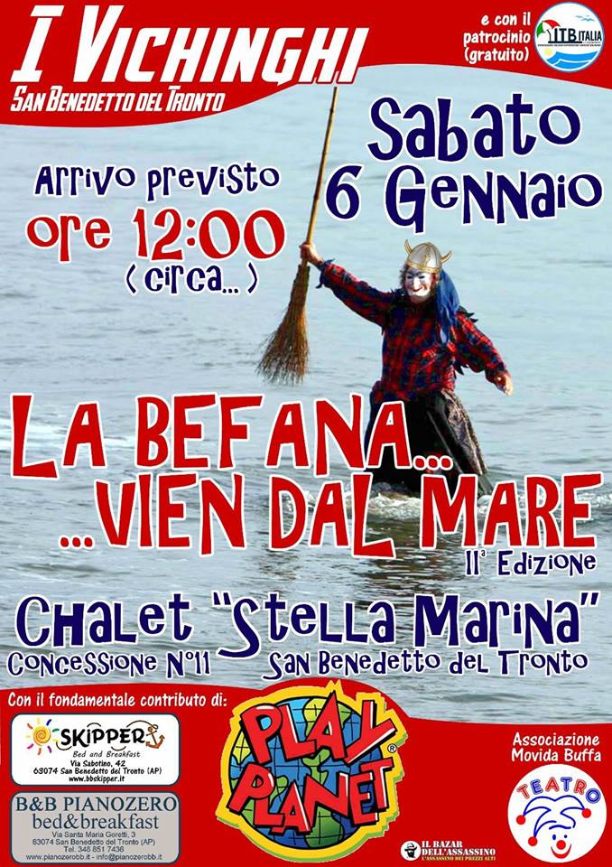 SAN BENEDETTO DEL TRONTO – Anche quest’anno, sulla spiaggia antistante la concessione n. 11 “Stella Marina” di San Benedetto del Tronto, torna il tradizionale appuntamento con “La Befana… vien dal mare”, giunto alla sua 3a edizione.