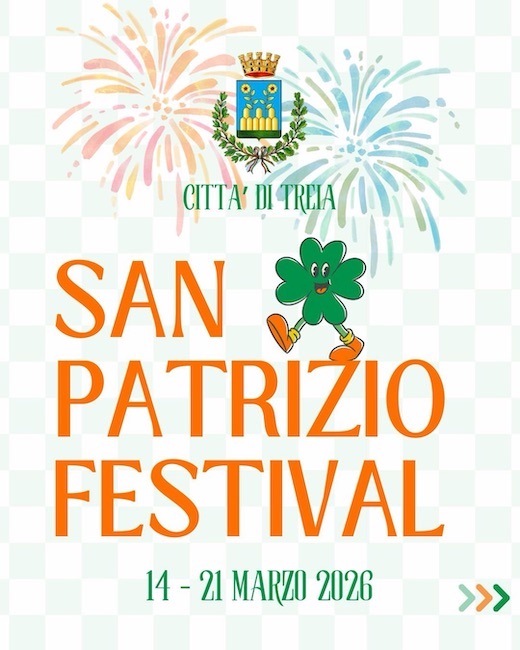 TREIA – Una settimana di iniziative per celebrare il patrono della città. Dal 14 al 21 marzo 2026 torna a Treia il San Patrizio Festival, il calendario di appuntamenti promosso per rendere omaggio a San Patrizio e coinvolgere cittadini e visitatori con eventi diffusi nel cuore della città.