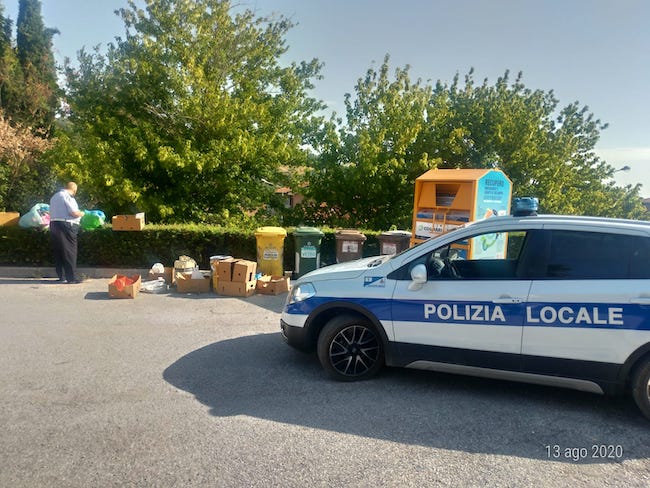 E’ questo il risultato dell’ennesimo controllo effettuato dalla Polizia Locale del Comune di San Severino Marche nei pressi del punto raccolta di via Salvo d’Acquisto dove un cittadino ha gettato diverso materiale fuori dai cassonetti e non in orario e giorni previsti per il conferimento.