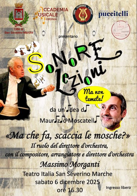 Il programma culturale del pomeriggio prenderà il via alle ore 16:30 presso il teatro Italia, con il primo appuntamento della rassegna “Sonore Lezioni” ideata e curata da Maurizio Moscatelli. Protagonista della lezione, che unisce didattica musicale e ascolto, sarà il maestro Massimo Morganti, rinomato trombonista, compositore e arrangiatore, in un incontro che si preannuncia di alto livello artistico e divulgativo.