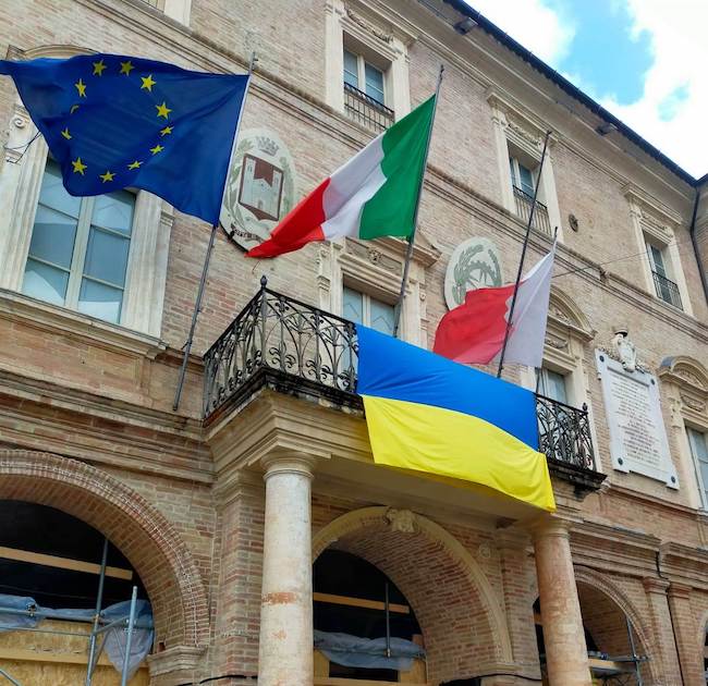 “La nostra vuole essere una ferma condanna – spiega il sindaco, Rosa Piermattei, che aggiunge – Siamo vicini ai nostri amici ucraini e ancora di più alle tante persone che, nate in Ucraina, oggi vivono da noi e, ovviamente, alle loro famiglie che in molti casi sono rimaste in patria. Sono una quarantina gli ucraini residenti in città ma, nel corso degli ultimi anni, molti dopo essere stati accolti a San Severino Marche sono diventati cittadini italiani perché magari si sono sposati qui o perché è da tantissimo tempo vivono da noi. La comunità settempedana ha deciso di stringersi a loro, ai loro cari e a tutto il popolo ucraino, in un fraterno abbraccio in questo tragico momento”.