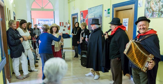 SAN SEVERINO MARCHE – Tradizionale canto della Pasquella, ma in versione “solidale”, per I Cantastorie di Passo di Treia che alla vigilia dell’Epifania hanno animato vie e piazze del centro fino ad arrivare alla Casa di riposo “Lazzarelli” dove hanno allietato gli ospiti con alcuni brani suonati e cantati prima di consegnare quanto raccolto nel canto della questua che da sempre accompagna la cultura popolare marchigiana.
