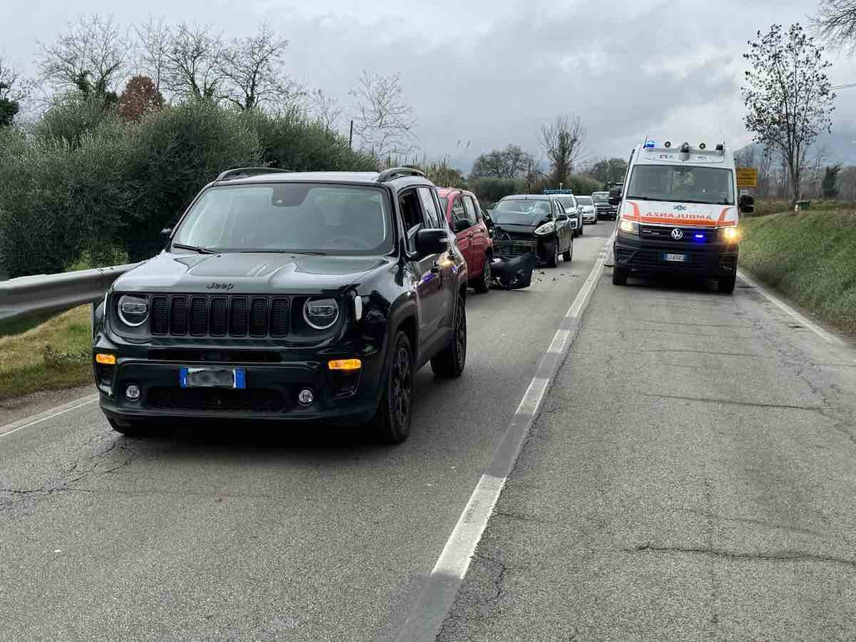 SAN SEVERINO MARCHE – Un tamponamento a catena si è verificato nella mattinata di oggi, poco prima delle ore 10, lungo la strada statale 361 “Septempedana”, al chilometro 54+800, in località Pieve.