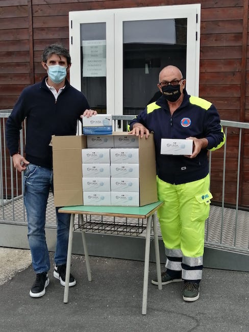 SAN SEVERINO MARCHE – Un’altra azienda del territorio, la Smask medical technologies di Montegranaro, in provincia di Fermo, risponde all’appello del sindaco di San Severino Marche, Rosa Piermattei, e dona mascherine chirurgiche dall’alto potere filtrante ai volontari del gruppo settempedano di Protezione Civile. La consegna, avvenuta in queste ore, ha interessato il responsabile dei volontari, Dino Marinelli.