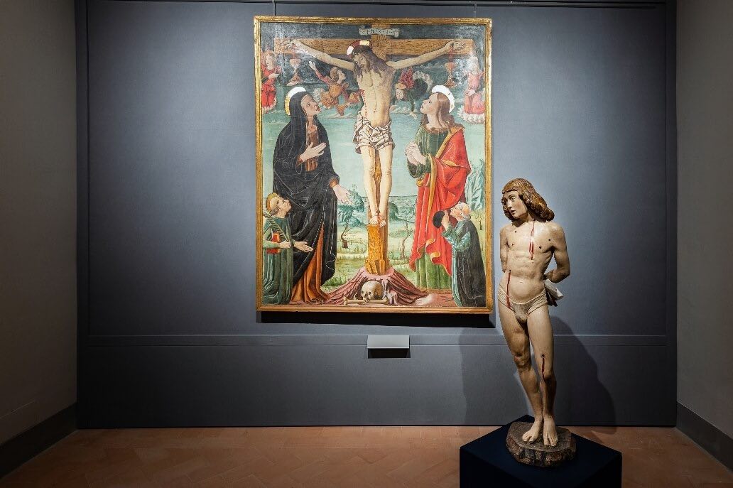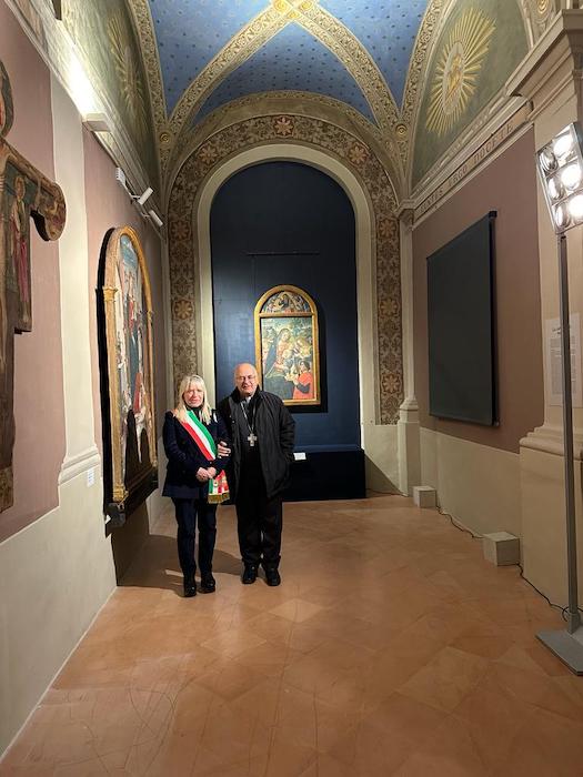 Il criterio dell’allestimento è profondamente simbolico: le opere sono esposte per luogo di provenienza: “L’obiettivo è ricreare quel senso di piazza, di agora che i nostri borghi hanno temporaneamente perduto” – spiega nel video la direttrice.