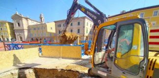 SAN SEVERINO MARCHE - I lavori di messa in sicurezza della voragine apertasi sull’asfalto in piazza Del Popolo e...