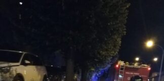 San Severino, tronco d’albero e sterpaglie in fiamme in viale...