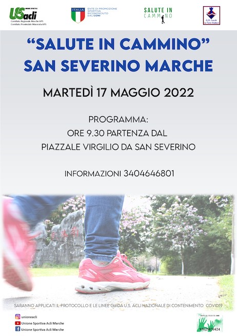 SAN SEVERINO MARCHE – Martedì 17 maggio nuovo appuntamento col progetto regionale “Salute in cammino” a San Severino Marche.