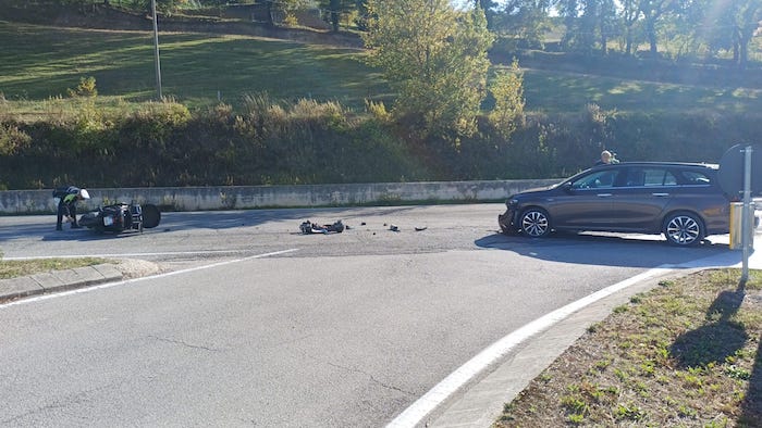 Per cause in corso di accertamento da parte della Polizia Locale della Città di San Severino Marche, una Fiat Tipo station wagon è entrata in collisione con uno scooter Bmw.
