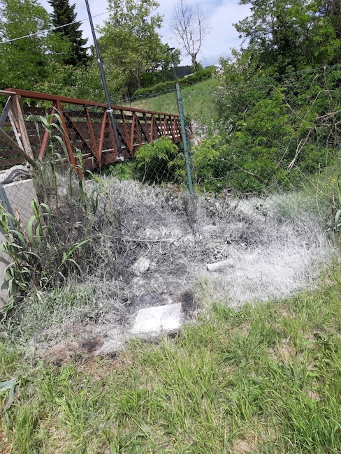 Il principio di incendio, subito domato grazie al tempestivo intervento di alcuni collaboratori scolastici giunti sul posto armati di estintori, ha rischiato di interessare un ponte in legno e acciaio che attraversa il fiume Potenza fungendo da passerella pedonale.