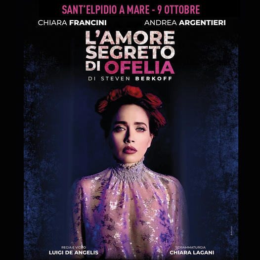 SANT’ELPIDIO A MARE (FM) – Sabato 9 ottobre 2021, alle ore 21.15, al Teatro Luigi Cicconi di Sant’Elpidio a Mare, andrà in scena “L’amore segreto di Ofelia” dell’inglese Steven Berkoff con Chiara Francini e Andrea Argentieri (premio UBU 2019 miglior attore under 35)