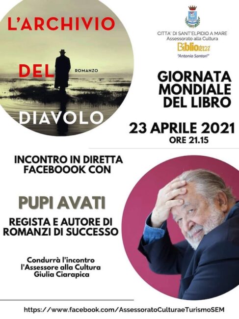 SANT’ELPIDIO A MARE (FM) – Venerdì,23 aprile 2021, alle ore 21.15 Pupi Avati presenterà il suo libro “L’archivio del diavolo”: appuntamento virtuale con l’Assessorato alla Cultura e Turismo di Sant’Elpidio a Mare , in occasione della Giornata Mondiale del Libro.