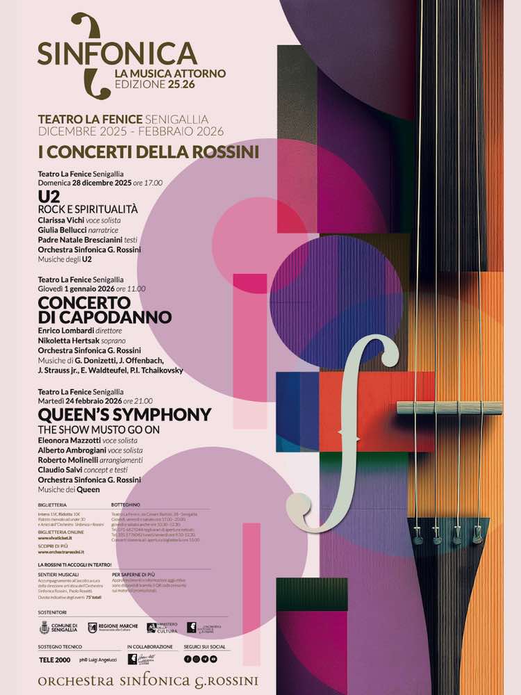 SENIGALLIA – Domenica 28 dicembre 2025 alle ore 17.00 al Teatro La Fenice di Senigallia risuoneranno le note della famosa band irlandese U2. L’Orchestra Sinfonica G. Rossini vuole trasmettere emozioni e messaggi attraverso la musica. I successi degli U2 rappresentano quindi un repertorio perfetto: le loro canzoni sono componimenti musicali di successo planetario e nei testi si possono trovare tanti significati e valori.