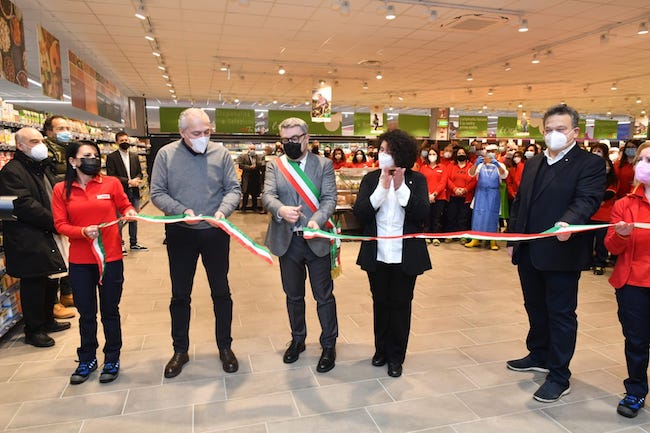 SENIGALLIA (AN) – Il Sindaco di Senigallia Massimo Olivetti ha tagliato il nastro del superstore Conad, che ha riaperto la mattina di sabato 5 marzo dopo una completa ristrutturazione. Alla breve cerimonia, tenutasi prima dell’apertura nel rispetto delle disposizioni anti-covid, era presente l’amministratore delegato di Commercianti Indipendenti Associati – Conad, Luca Panzavolta. Don Paolo Gasperini della parrocchia di Cristo Redentore ha impartito la benedizione. All’interno del negozio lavorano più di 100 persone, di cui 13 assunte appositamente per la riapertura. Gli orari al pubblico sono dalle 7 alle 21, domenica compresa.