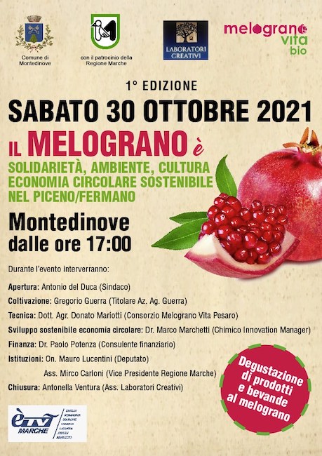 Nell’ambito di “Sibillini In Rosa” sabato 30 ottobre 2021 ,dalle ore 17.00 un evento dedicato a un altro frutto antico e dalle proprietà straordinarie : “il MELOGRANO è” Solidarietà, Ambiente, Cultura, Economia circolare sostenibile nel Piceno/Fermano.