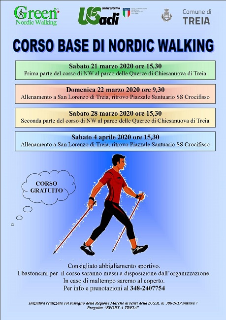 TREIA (MC) – Dal 21 marzo al 4 aprile si svolgerà un corso gratuito base di nordic walking.