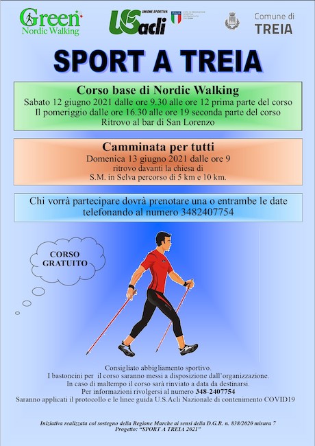 La prima iniziativa programmata è fissata per sabato 12 giugno con un corso base di nordic walking che si svolgerà dalle 9,30 alle 12 e dalle 16,30 alle 19 con ritrovo davanti al bar di San Lorenzo di Treia.