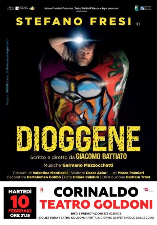 CORINALDO (AN) – Martedì 10 febbraio 2026, alle ore , per la Stagione 2025-26, al Teatro Comunale Carlo Goldoni di Corinaldo, Stefano Francioni Produzioni, Teatro Stabile d’Abruzzo presentano “Dioggene” di Giacomo Battiato con Stefano Fresi. Lo spettacolo è diviso in tre quadri e ruota intorno a un unico personaggio, un attore famoso che si chiama Nemesio Rea.