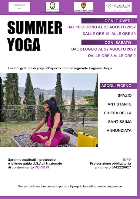 ASCOLI PICENO – E’ tutto pronto per la quinta edizione del progetto “Summer Yoga – Laboratori territoriali di prevenzione del tumore al seno”, l’iniziativa che mette a disposizione lezioni gratuite di yoga con l’insegnante Eugenia Brega.