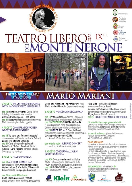 CAGLI (PU) – Come ogni anno ritorna il festival multidisciplinare ideato dal pianista Mario Mariani alle pendici del Monte Nerone, nella pineta di Fosto, Cagli (PU).