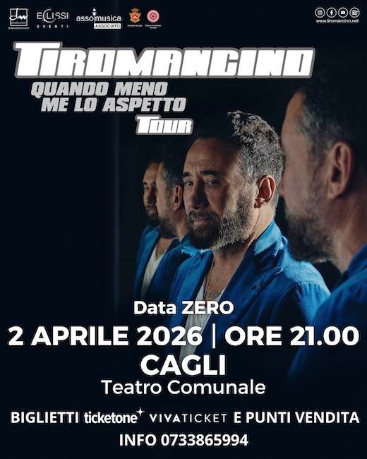 CAGLI – Dopo l’uscita del nuovo album “Quando meno me lo aspetto” via EMI Records Italy/Universal Music Italia, i Tiromancino, capitanati da Federico Zampaglione, tornano nei teatri con “QUANDO MENO ME LO ASPETTO TOUR”, prodotto da DM Produzioni. La data Zero è ufficialmente fissata il 2 aprile a Cagli (PU) presso il Teatro Comunale. L’anteprima esclusiva anticiperà il Tour che partirà il 10 aprile dall’Auditorium Parco delle Musica di Roma (Sala Sinopoli) per poi toccare tutta la penisola.