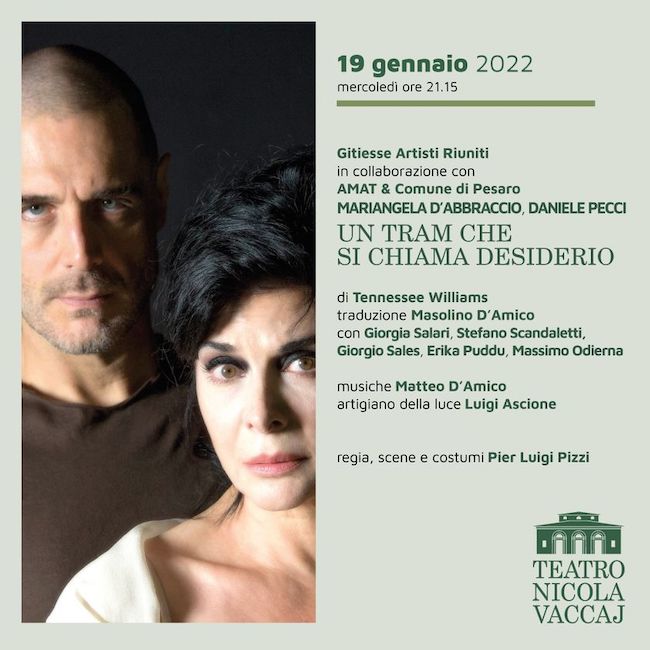 TOLENTINO – Si alza il sipario sulla stagione di prosa 2022 del Teatro Vaccaj di Tolentino. Mercoledì 19 gennaio, alle ore 21.15 (unica data nelle Marche) andrà in scena uno dei capolavori di Tennessee Williams: ‘Un tram che si chiama desiderio’ , titolo conosciuto in tutto il mondo, che ancora oggi genera interesse ed emozione.