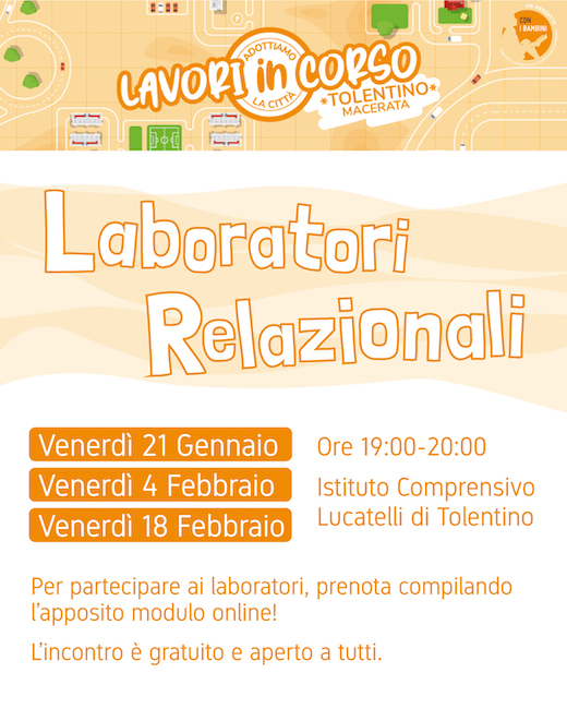 TOLENTINO – “Lavori in Corso – Adottiamo la città” è un progetto, che sta entrando nel vivo delle attività ed è finalizzato a contrastare la povertà educativa dei minori del territorio di Tolentino, attraverso numerose iniziative a sostegno e coinvolgimento di minori, famiglie, comunità educante e stakeholder locali.