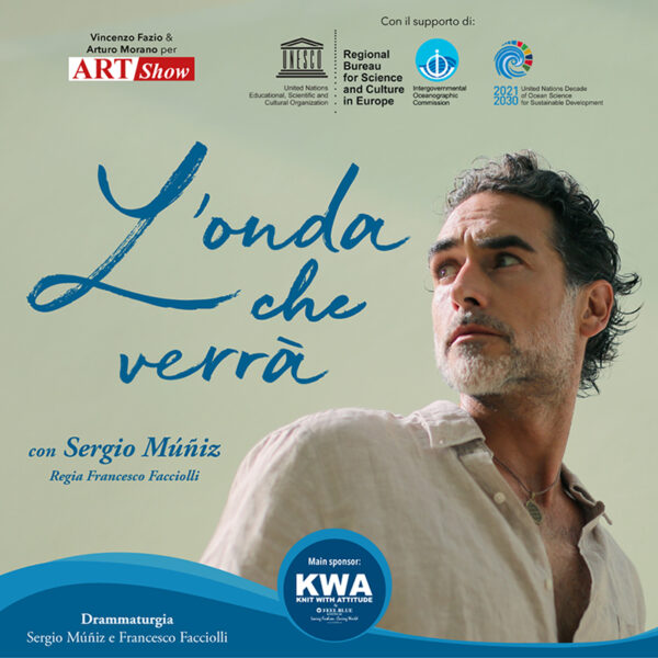L’onda che verrà con Sergio Múñiz, regia di Francesco Facciolli, scritto a quattro mani da interprete e regista, co-prodotto da Vincenzo Fazio e Art Show di Arturo Morano, realizzato con il supporto di UNESCO nell’ambito del DECENNIO DEL MARE e con il contributo di Feel Blue Knitwear, azienda di accessori in maglieria attenta alla sostenibilità ambientale e sociale.