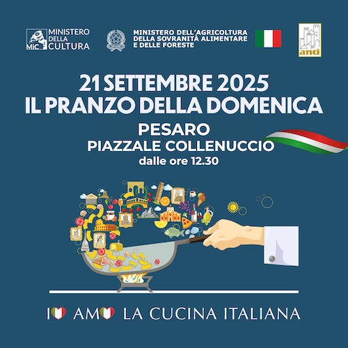 Il Comune di Pesaro aderisce all’iniziativa promossa da ANCI, Ministero della Cultura e Ministero dell’Agricoltura della Sovranità Alimentare e delle Foreste, per sostenere la candidatura della cucina italiana a Patrimonio Immateriale dell’Umanità UNESCO. Saranno allestite tavolate per accogliere i cittadini al pranzo a cui possono partecipare, gratuitamente, portando dei piatti da condividere (e le stoviglie). Per prenotare il proprio posto a tavola, compilare il link: https://forms.office.com/e/77q8gcLLy5?origin=lprLink o contattare l’Ufficio Relazioni con il Pubblico URP del Comune chiamando lo 0721.387400, scrivendo un messaggio WhatsApp allo 3336180142 o presentandosi allo sportello Informa&Servizi (piazza del Popolo 1) dal lunedì al venerdì dalle 9 alle 13 il giovedì anche dalle 15 alle 17.