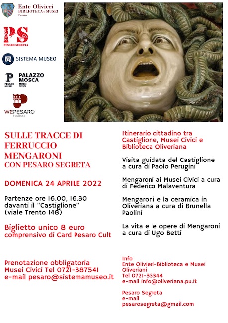 Si seguirà un percorso con Pesaro Segreta sulle tracce del ceramista autore della mitica Medusa che coinvolge tre luoghi della cultura carichi di storia: il Castiglione, i Musei Civici e la Biblioteca Oliveriana